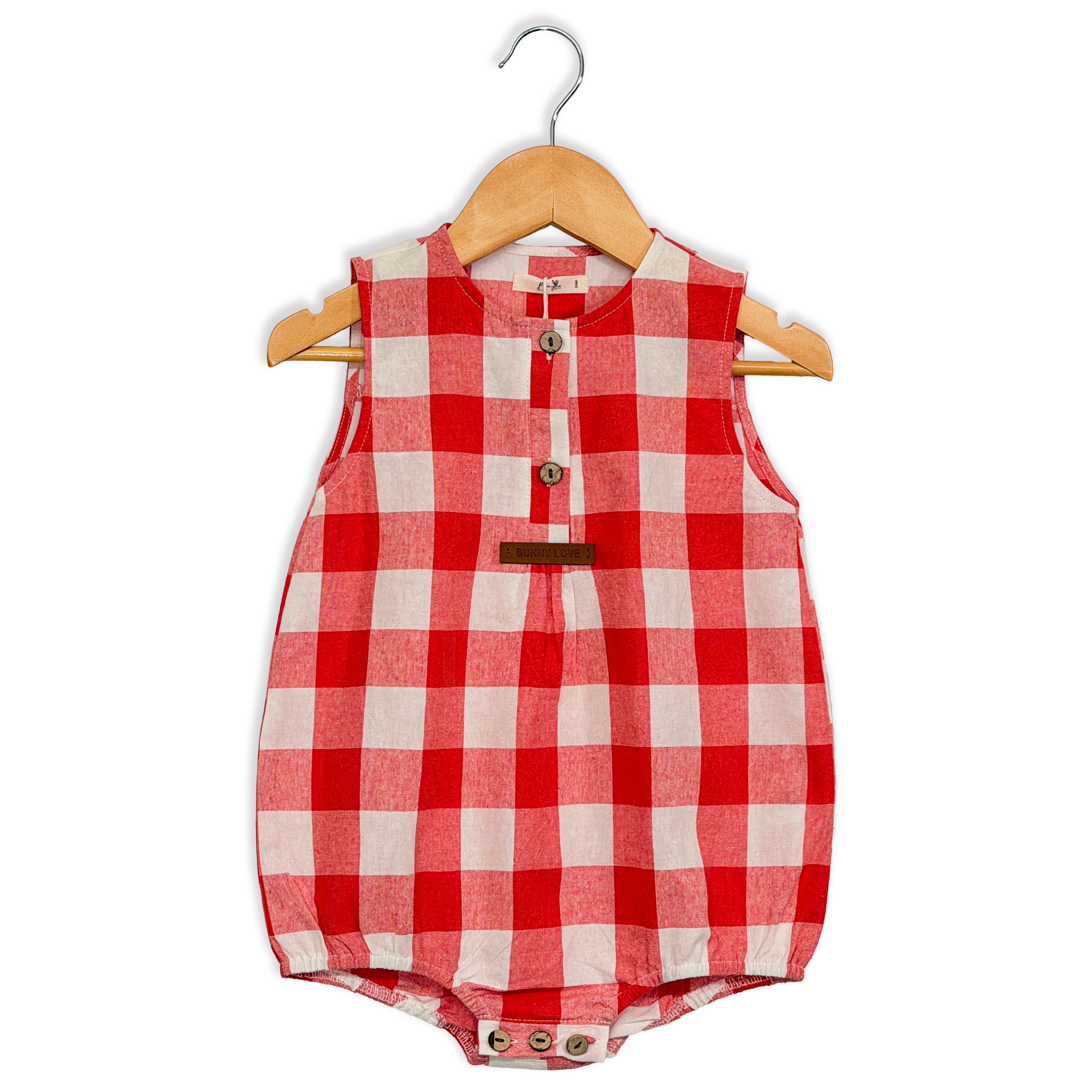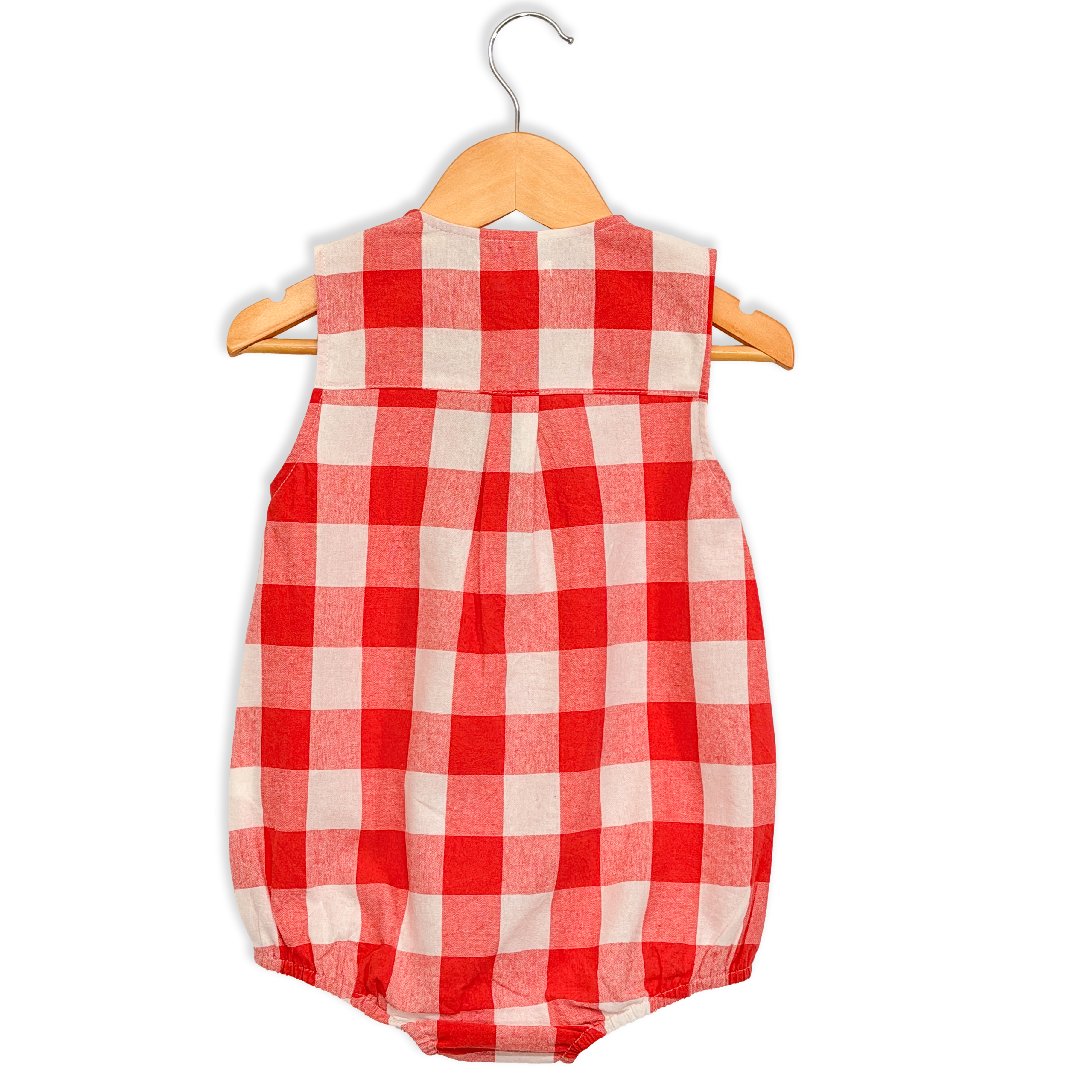GINGHAM ROMPER - CORAL SB3059