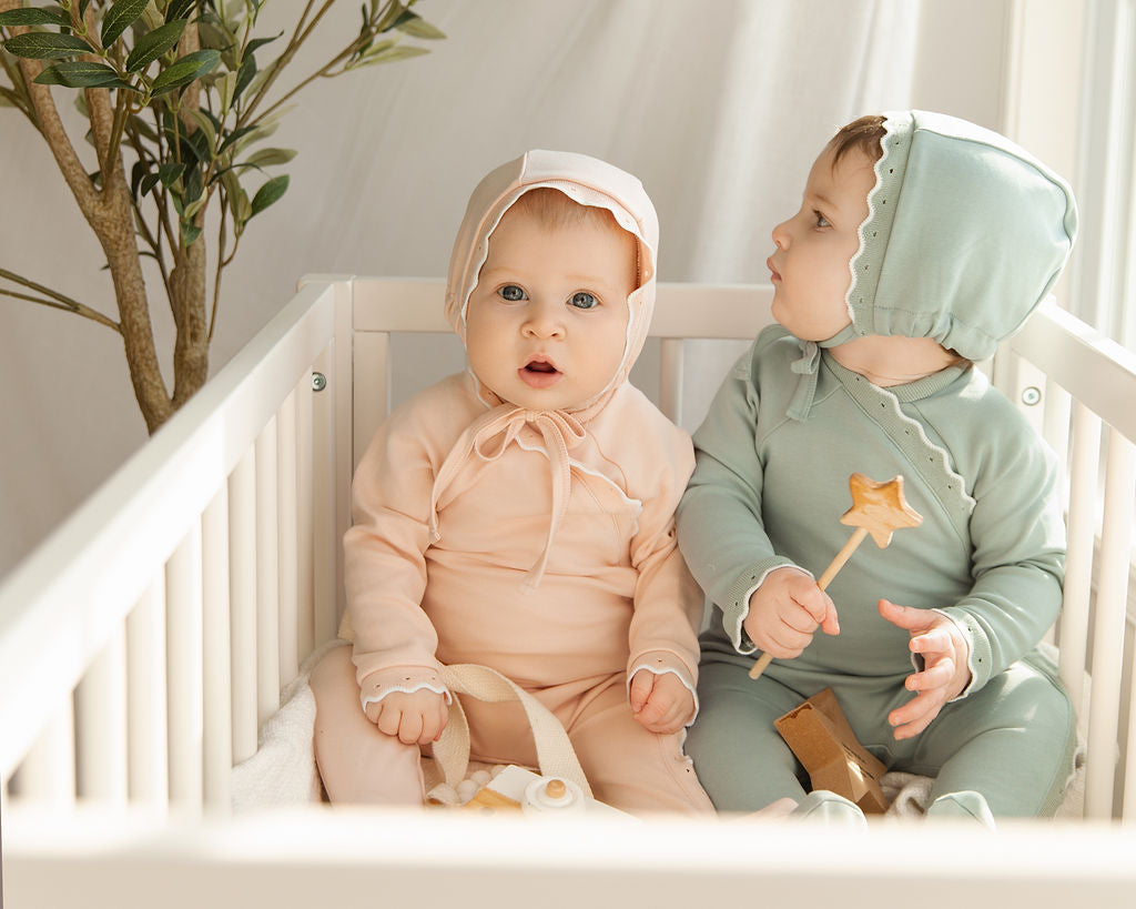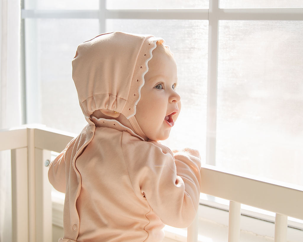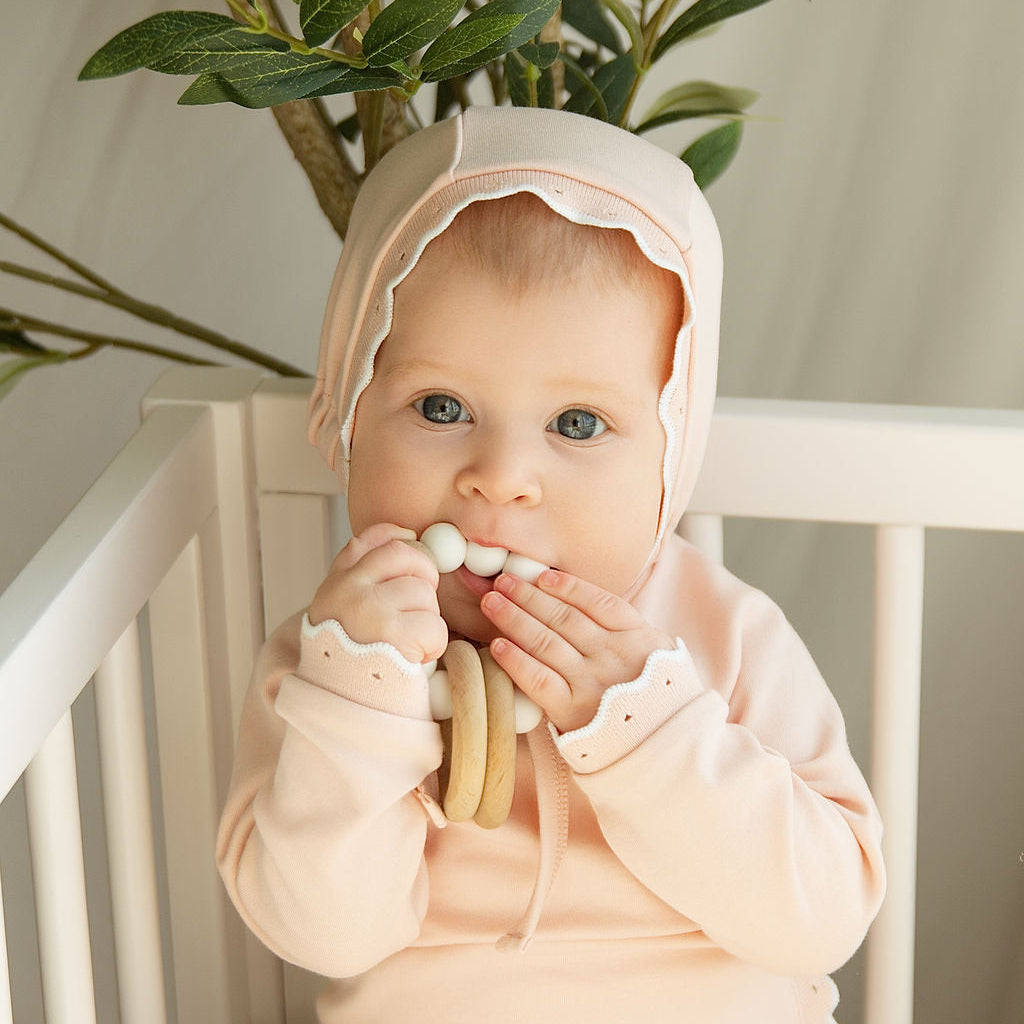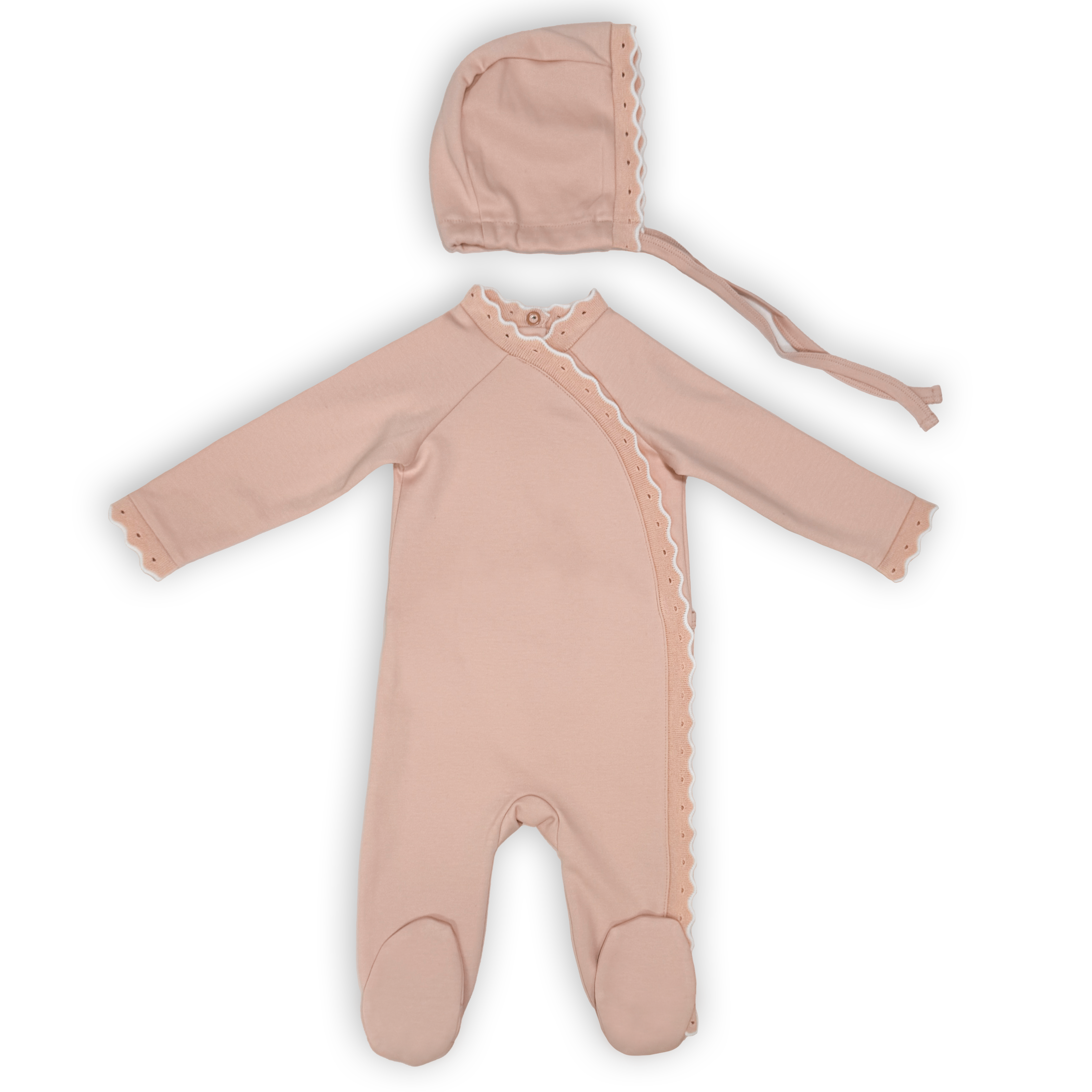 SCALLOPED RIBBED TRIM LAYETTE - PINK SL2758