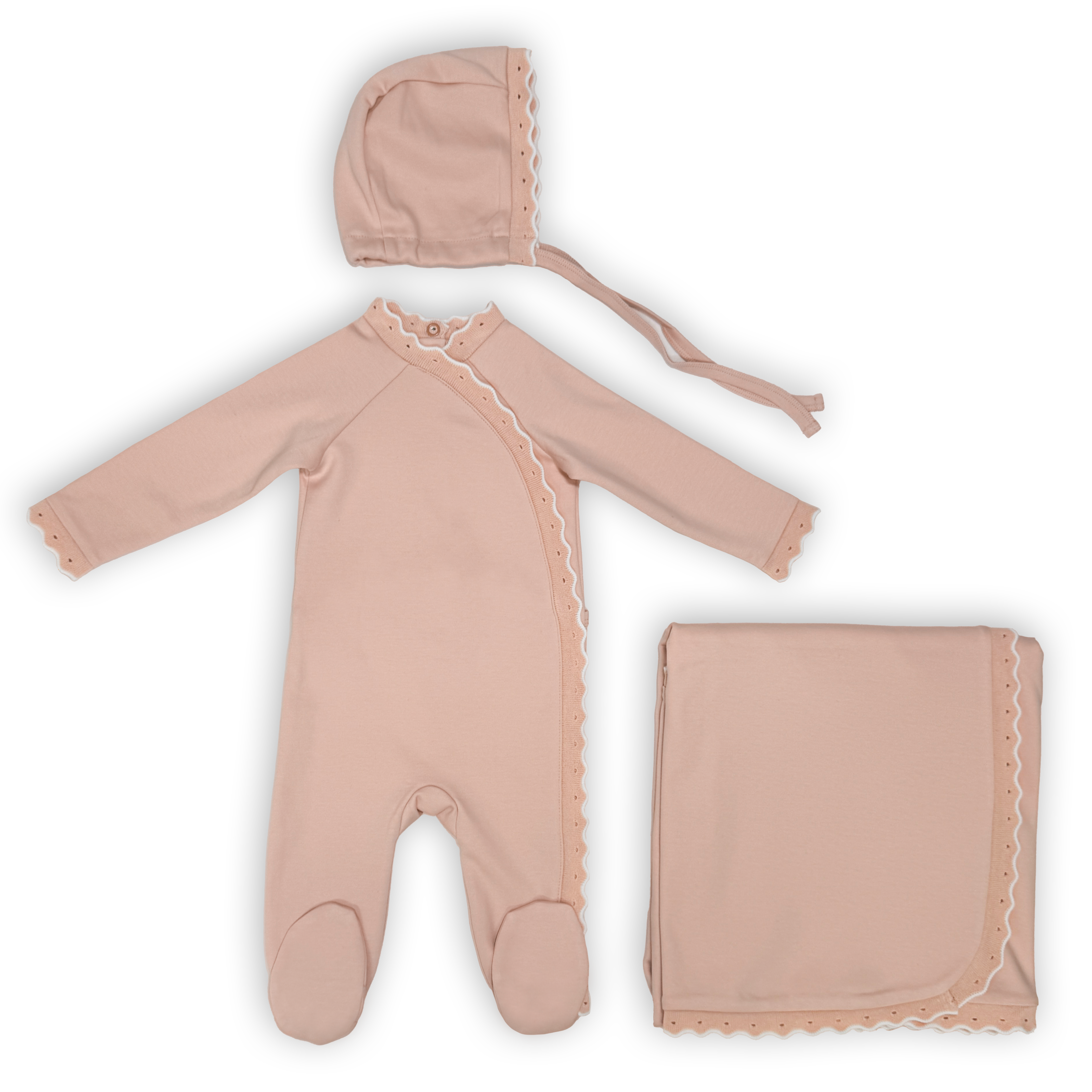 SCALLOPED RIBBED TRIM LAYETTE SET - PINK SL2758-S